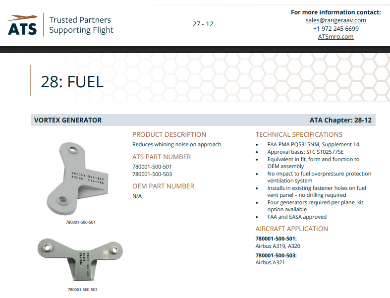 Installation of ATS vortex generators reduce aircraft wining noise on approach providing a quieter landing for passengers and the community in the area.